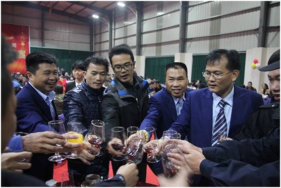 答謝晚宴現(xiàn)場(chǎng)氣氛熱烈,大家舉杯共慶, 集團(tuán)董事長(zhǎng)龍其生、總裁龍其偉向大家敬酒,表示感謝。