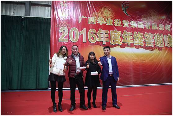 大會(huì)結(jié)束后,大家歡聚一堂舉行2016年度年終答謝晚宴。晚宴設(shè)席三十二臺(tái),受邀嘉賓有華業(yè)的各合作伙伴、廣西精一律師事務(wù)所的伙伴們。華業(yè)今天的模樣,離不開(kāi)社會(huì)各界朋友的關(guān)心和支持,所有的感謝都記在心里,所有的歡樂(lè)都融入美酒佳肴中。